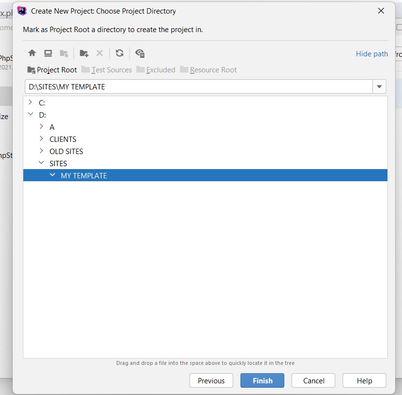 3. Select the folder you named in Step 1 ('My Template') and click the blue 'Finish' button at the bottom: