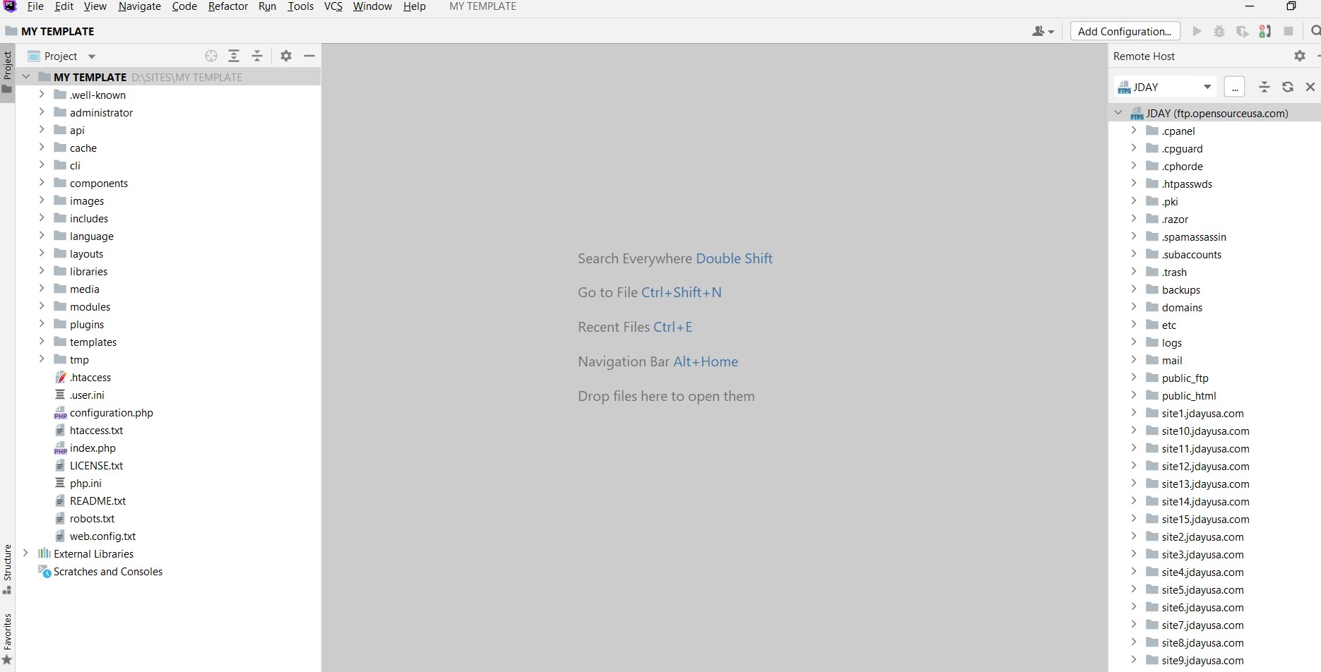 Now that we have created a directory on our computer with all the website files from our Joomla project, we will connect PHP Storm to our website using FTP. There are far more features and benefits found in this program than what we will cover (which will be the essential items needed to get started).